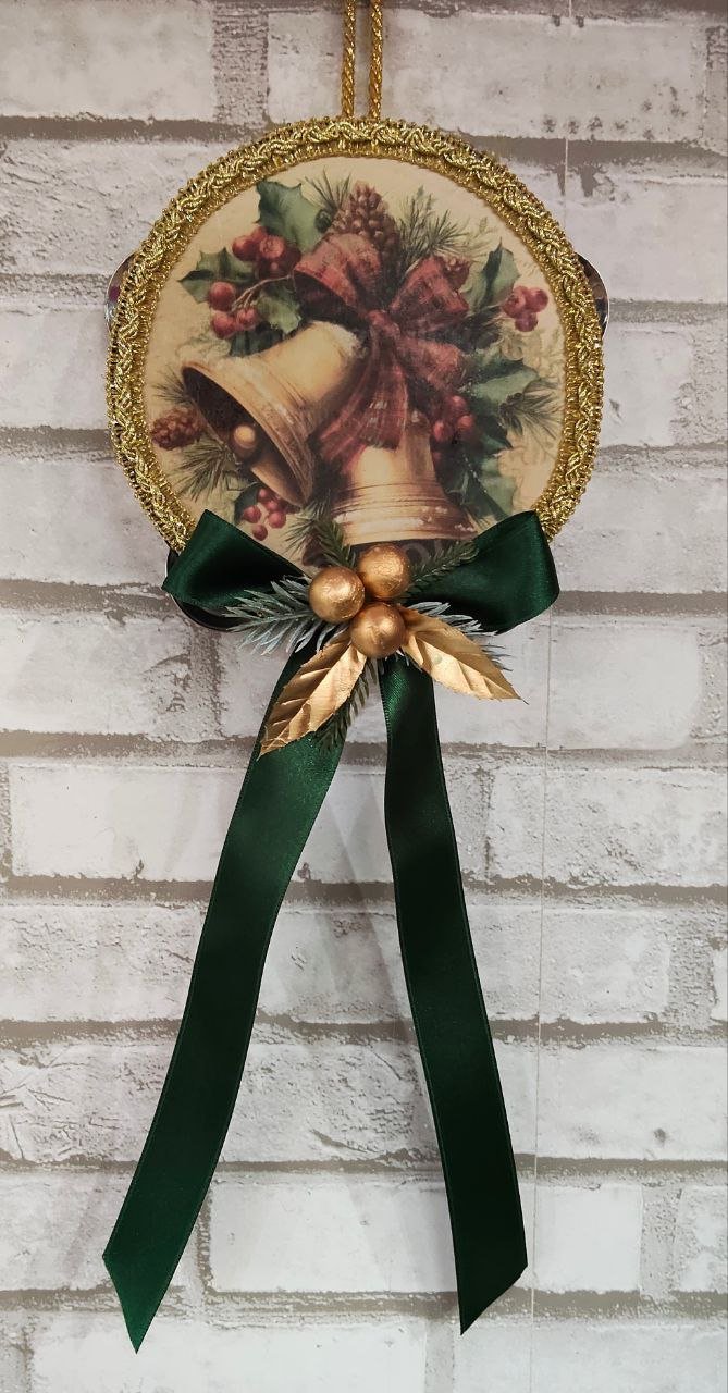 Addobbi natalizi – Tamburello decorativo con stampa natalizia (diametro 14 cm)