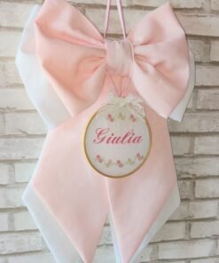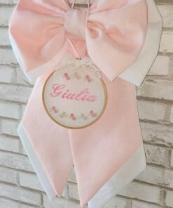Con la sua altezza di circa 50 cm, il fiocco si presenta elegante e raffinato, perfetto per annunciare con grazia l’arrivo della tua piccola.