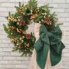 Realizzata con cura e impreziosita da un elegante fiocco in velluto rosso, rifinito con stoffa tartan per un tocco classico e raffinato. Il fiocco ha un’altezza di 45 cm, dando alla decorazione un aspetto scenografico e imponente.