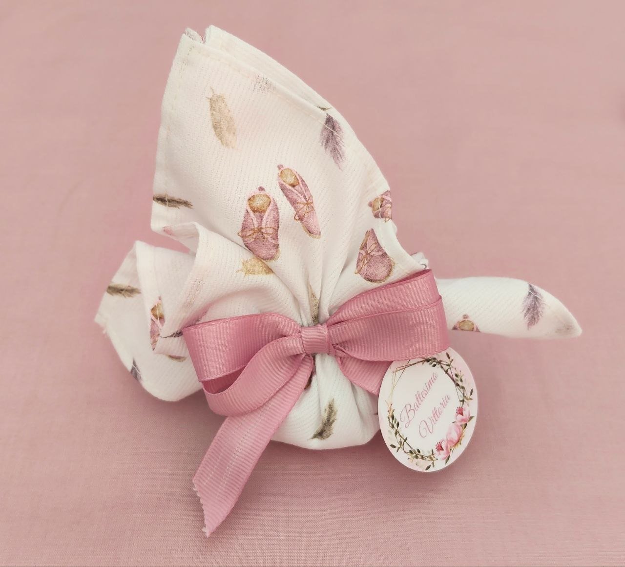 Porta confetti realizzato artigianalmente in tessuto piquet mille righe fantasia rosa antico, delicato e raffinato, perfetto per celebrare momenti speciali .Ideale per nascite e battesimi, questo portaconfetti unisce semplicità ed eleganza, rendendo ogni evento ancora più memorabile .Ogni portaconfetti è completo di: